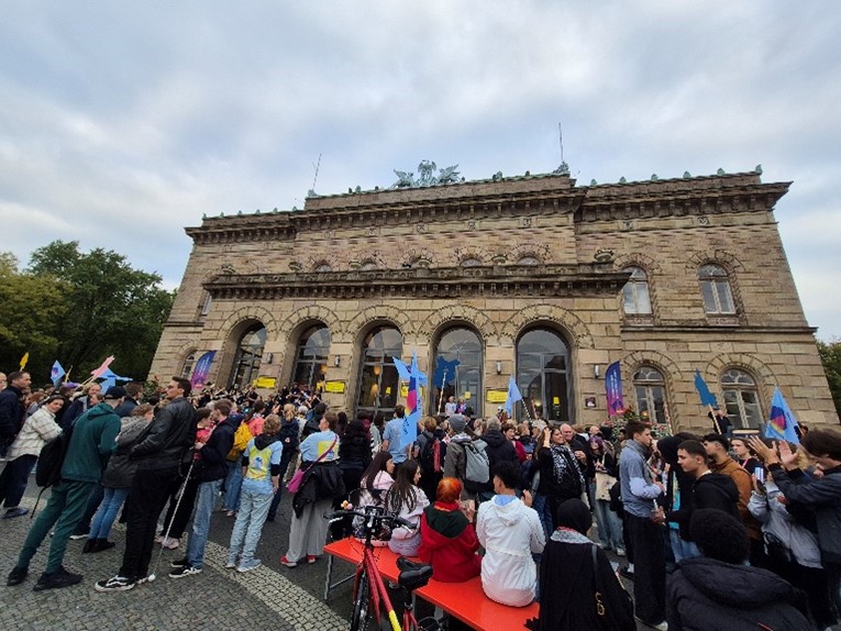 Wir marschierten bei einem Walk durch Braunschweigs Innenstadt, hissten die Festivalfahne vorm Rathaus und feierten eine kunterbunte Eröffnung im ehrwürdigen Staatstheater (900 Plätze – kein Druck).